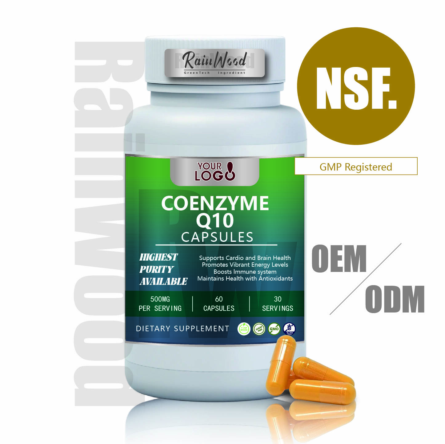 Čistota a dodávání podle farmaceutických norem : CoQ10 je extrahován bez použití rozpouštědel, za studena, z neupravených sojových prekurzorů (certifikované Non-GMO projektem). Každá várka dosahuje čistoty 99,5 %, bez stop rozpouštědel, těžkých kovů (olovo, rtuť, arsen) a pesticidů – což převyšuje běžnou úroveň čistoty rozpočtových značek ve výši 95 %. To zajišťuje bezpečnost a účinnost pro spotřebitele dbající na zdraví.